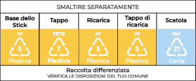 Simmondsia Chinensis (Jojoba) Seed Oil, Zinc Oxide, Euphorbia Cerifera (Candelilla) Wax, Caprylic/Capric Triglyceride, Ricinus Communis (Castor) Seed Oil, Helianthus Annuus (Girasole) Seed Wax, Silica, Coco-Caprylate/Caprate, Hydrogenated Vegetable Oil, Camellia Japonica Seed Oil, Polyglyceryl-2 Triisostearate, Pyrus Malus (Mela) Seed Oil, Helianthus Annuus (Girasole) Seed Oil, Vitis Vinifera (Uva) Seed Oil, Squalane, Polyhydroxystearic Acid, Octyldodecanol, Stearic Acid, Isostearic Acid, LecithinDomande frequenti